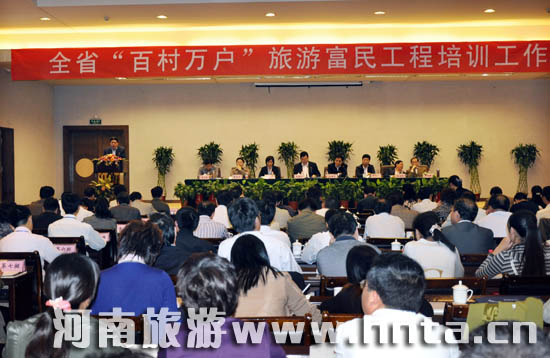 會(huì)議下發(fā)了《全省“百村萬(wàn)戶”旅游富民工程培訓(xùn)工作方案》,來(lái)自洛陽(yáng)、嵩縣、魯山、欒川縣潭頭鎮(zhèn)、安陽(yáng)林州石板巖鄉(xiāng)、西峽縣華山村、二七區(qū)櫻桃溝村等七個(gè)率先發(fā)展鄉(xiāng)村旅游的地區(qū)代表介紹了各自的發(fā)展經(jīng)驗(yàn)和做法,并介紹了下一步的工作計(jì)劃。