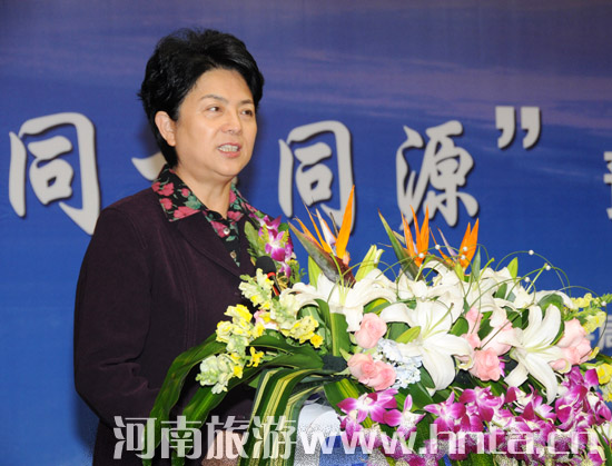 孔玉芳對出席論壇的嘉賓表示熱烈的歡迎。她向嘉賓介紹了河南省省情。她說,河南素有“中州”、“中原”之稱,總面積16.7萬平方公里,總?cè)丝?億。河南歷史悠久,文化燦爛,歷史遺存眾多,地上文物、地下文物均居全國前列,館藏文物占全國的八分之一,F(xiàn)有洛陽龍門石窟、安陽殷墟、登封“天地之中”歷史建筑群3處文化遺產(chǎn),河南是中國姓氏的發(fā)源地,100個大姓中70多個源于河南。河南還是少林武術(shù)和陳氏太極拳的發(fā)源地,堪稱“中國功夫之鄉(xiāng)”。臺灣與河南同根同祖同源,臺灣同胞與中原兒女人緣相親、文緣相近、史緣相通。豫臺兩地旅游業(yè)發(fā)展各具特色,有較好的互補性,具有廣闊的合作空間。豫臺旅游高峰論壇的舉辦,為兩地旅游界搭建了良好的交流合作平臺,對促進兩岸拓寬合作領(lǐng)域,實現(xiàn)共同發(fā)展具有重要意義。她希望兩地旅游界把握機遇,增進了解,深化共識,加強旅游合作,為推動豫臺兩地經(jīng)濟社會發(fā)展做出新的更大的貢獻。