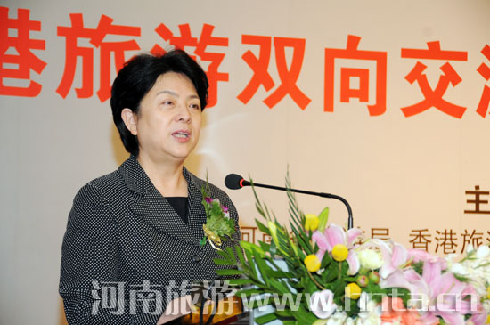 河南省委常委、宣傳部長(zhǎng)、副省長(zhǎng)孔玉芳在會(huì)上致辭中說(shuō),河南地處中原,是中華文明的主要發(fā)祥地之一,是中華姓氏文化的主要發(fā)源地,自然景觀與人文資源兼容并蓄、交相輝映。近年來(lái),省委、省政府高度重視旅游業(yè)發(fā)展,將其作為經(jīng)濟(jì)社會(huì)發(fā)展的戰(zhàn)略性支撐產(chǎn)業(yè)予以重點(diǎn)培育,旅游產(chǎn)業(yè)規(guī)模不斷擴(kuò)大,質(zhì)量效益明顯提升。2010年河南省共接待海內(nèi)外游客2.58億人次,實(shí)現(xiàn)旅游總收入2294億元,分別比上年增長(zhǎng)13.1%和15.5%,旅游收入相當(dāng)于全省GDP的10%。旅游業(yè)已成為河南經(jīng)濟(jì)社會(huì)發(fā)展的一大優(yōu)勢(shì)、一大支撐、一大后勁。香港是國(guó)際大都市,是世界金融中心之一,是世界知名的旅游勝地。河南有近1億人口,是個(gè)潛力巨大的旅游客源地。香港的旅游資源對(duì)河南民眾有很大的吸引力,雙方在旅游方面的發(fā)展合作前景廣闊。近年來(lái),豫港兩地經(jīng)濟(jì)文化交流日益緊密,尤其是兩地旅游業(yè)界的合作不斷加強(qiáng)。此次活動(dòng)的舉辦為豫港兩地旅游業(yè)界更深、更高層次的合作提供了一個(gè)平臺(tái),同時(shí),也為展示博大精深的中原文化提供一個(gè)良好機(jī)會(huì)。我們將以此為契機(jī),充分發(fā)揮我省文化資源優(yōu)勢(shì),著力打造文化旅游精品線路,全面提升我省文化旅游的知名度和影響力,推動(dòng)全省旅游業(yè)又好又快發(fā)展。