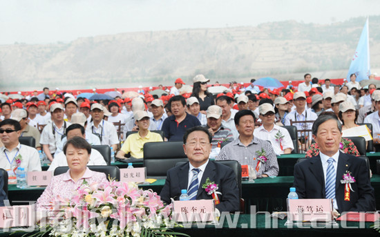 全國政協(xié)副主席陳奎元,國家旅游局副局長杜一力,河南省人大常委會副主任蔣篤運,河南省政協(xié)副主席李英杰,山東省省長助理陳光,河南省旅游局局長范修芳,寧夏回族自治區(qū)政府經濟技術協(xié)調辦公室副主任周明新,復旦大學教授錢文忠,世界旅游組織亞太部特別代表貝茲博拉•馬丹帕拉薩德及夫人,聯(lián)合國科教文組織官員索南姆•尤丹,克羅地亞駐華使館大使安戴•希莫尼奇及夫人,越南駐華大使阮文詩及夫人,厄瓜多爾駐華使館大使代辦阿爾瓦羅•加爾西亞,剛果駐華使館大使代辦馬牙卡•西法,玻利維亞駐華使館大使代辦勞爾•赫伯托•臺蘭•貝爾蒙特,美國政府基金會駐華代表 亞歷山大•康拉德,埃及駐華使館旅游處參贊納賽爾•阿卜杜拉,商務代表朊文榮,俄羅斯聯(lián)邦共和國商務處處長、商務參贊佩雷瓦羅夫•亞歷山大,河南省18個省轄市政府、旅游局領導,沿黃九省(區(qū))旅游局和重點旅游城市旅游局領導、業(yè)界代表,全球十大著名河流代表,以及德國、俄羅斯、加拿大、韓國、新加坡、日本旅行商等參加了本次活動。儀式由河南省旅游局局長范修芳主持。