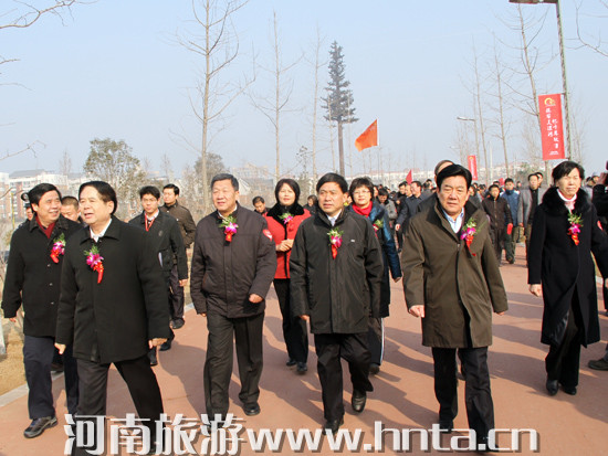 漯河市委副書(shū)記、代市長(zhǎng)曹存正致辭說(shuō),歡樂(lè)健康游河南暨中原人游中原活動(dòng),是省旅游局貫徹落實(shí)省委、省政府中原經(jīng)濟(jì)區(qū)建設(shè)的一項(xiàng)創(chuàng)新舉措,是助推河南加快建設(shè)旅游強(qiáng)省的一項(xiàng)重大舉措。省旅游局把這項(xiàng)活動(dòng)啟動(dòng)儀式放在漯河舉行,充分說(shuō)明對(duì)漯河旅游工作的關(guān)心與厚愛(ài)。漯河人民備受鼓舞、倍感振奮,必將進(jìn)一步激發(fā)全市人民實(shí)施“旅游興市”戰(zhàn)略、建設(shè)美好家園的信心和決心。近年來(lái),市委、市政府高度重視旅游文化產(chǎn)業(yè)發(fā)展,將打造“中原地區(qū)富有魅力的生態(tài)宜居名城”目標(biāo)和文化旅游產(chǎn)業(yè)發(fā)展有機(jī)結(jié)合起來(lái),重點(diǎn)打造了沙澧河、許慎園、小商橋等景區(qū),尤其是沙澧河風(fēng)景區(qū)成為生態(tài)、文化和休閑長(zhǎng)廊,多次舉辦了大型節(jié)會(huì)賽事,吸引了大批游客,漯河作為新興生態(tài)休閑旅游城市已初步形成。漯河將以這次啟動(dòng)儀式為新起點(diǎn),堅(jiān)持把旅游業(yè)作為加快經(jīng)濟(jì)發(fā)展方式轉(zhuǎn)變的著力點(diǎn)和增長(zhǎng)點(diǎn),進(jìn)一步加大投入和加大力度,努力打造旅游品牌,塑造精品線路,奮力開(kāi)創(chuàng)漯河旅游業(yè)發(fā)展新局面,為全面推進(jìn)中原經(jīng)濟(jì)區(qū)建設(shè)、加快中原崛起河南振興作出新的更大貢獻(xiàn)。