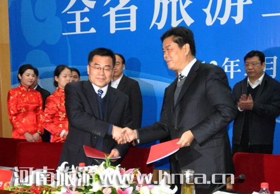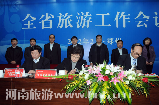 在14日舉行的2012年全省旅游工作會議上,省旅游局分別與省民航辦、鄭州新鄭國際機場、省工業(yè)和信息化廳、省國土資源廳、省交通運輸廳、省氣象局以及中國建設(shè)銀行河南省分行等7家單位簽訂了戰(zhàn)略合作協(xié)議,相約共同推動河南旅游產(chǎn)業(yè)持續(xù)、快速發(fā)展。