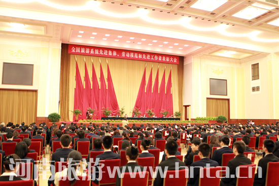 大會(huì)由人力資源和社會(huì)保障部、國家旅游局聯(lián)合召開。國家旅游局黨組全體成員、國家公務(wù)員局副局長吳云華出席大會(huì),國家旅游局副局長王志發(fā)主持會(huì)議。出席會(huì)議的還有受表彰的全國旅游系統(tǒng)先進(jìn)集體代表、勞動(dòng)模范、先進(jìn)工作者;往屆勞動(dòng)模范和先進(jìn)工作者代表;各省區(qū)市旅游局(委)負(fù)責(zé)人;國家旅游局機(jī)關(guān)和直屬單位負(fù)責(zé)人;北京市旅游企業(yè)和旅游院校代表共計(jì)650余人。我省洛陽市旅游局、河南省旅游資訊有限公司、西峽縣旅游局、開封清明上河園被評為先進(jìn)集體;焦作云臺(tái)山旅游發(fā)展有限公司董事長韓躍平、鄭州市導(dǎo)游管理服務(wù)中心導(dǎo)游員楊軍被評為勞動(dòng)模范;淮陽縣旅游局長張萍、許昌市旅游局長馬法友被評為先進(jìn)工作者。國家公務(wù)員局副局長吳云華宣讀了表彰決定;兩部門領(lǐng)導(dǎo)為獲獎(jiǎng)人員代表頒獎(jiǎng);五名先進(jìn)集體、勞動(dòng)模范和先進(jìn)工作者代表作了典型發(fā)言。我省西峽縣旅游局長孫占梅作為領(lǐng)獎(jiǎng)代表上臺(tái)接受了國家局領(lǐng)導(dǎo)的頒獎(jiǎng)。最后,國家旅游局局長邵琪偉作了重要講話。