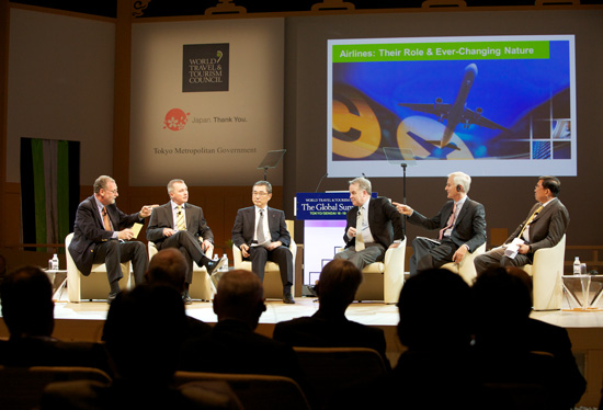 從行業(yè)復(fù)蘇的角度考慮,今年WTTC決定將第12屆旅游峰會的一部分放在去年曾發(fā)生了大地震的東日本地區(qū)的仙臺舉行。議題聚焦于從日本旅游業(yè)界的復(fù)蘇來看待世界旅游的危機管理。大會著重討論了如何應(yīng)對旅游突發(fā)事件,如恐怖襲擊、瘟疫流行、火山灰云、自然災(zāi)害、政治危機等。會議移師東京后議題著重于當(dāng)今世界的利率、貨幣、GDP、主權(quán)債務(wù)、信貸、流動性以及金融部門的發(fā)展趨勢是旅游行業(yè)在未來應(yīng)重點關(guān)注和研究的課題。會議認為作為旅游行業(yè)的基本組成部分,航空產(chǎn)業(yè)面臨著諸多的挑戰(zhàn),包括旅游消費者對其業(yè)務(wù)模式和售票辦法的困惑、其行業(yè)自身不斷增加的監(jiān)管負擔(dān)和歷史性的油價高企,如不解決好這些問題將會給航空產(chǎn)業(yè)乃至整個旅游行業(yè)的全面發(fā)展帶來負面的影響,這一案例也深刻揭示了旅游行業(yè)相互關(guān)聯(lián)的本質(zhì)特征。