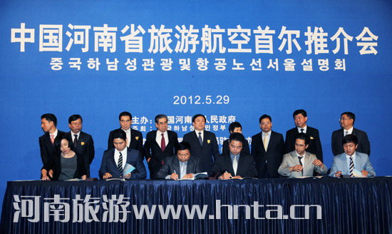 推介會(huì)上,河南三家旅行社與韓國(guó)三大旅行社簽訂了合作協(xié)議,共同推動(dòng)河南與韓國(guó)游客互動(dòng)交流。