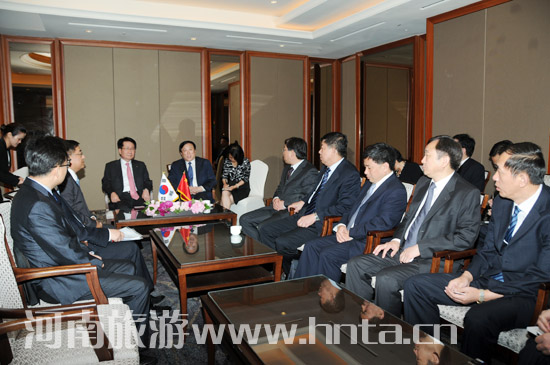 中國(guó)駐韓大使館參贊周長(zhǎng)亭在致辭中說(shuō),旅游作為人文交流的重要形式,發(fā)揮著促進(jìn)兩國(guó)人民了解發(fā)展與友好往來(lái)的重要作用。隨著中韓旅游的不斷發(fā)展,至2011年兩國(guó)互訪人數(shù)已達(dá)到650萬(wàn)人次,達(dá)到了歷史新高。他希望各位韓國(guó)朋友多到河南走一走、看一看,通過(guò)旅游交流,促進(jìn)文化和經(jīng)濟(jì)合作的深入開(kāi)展。