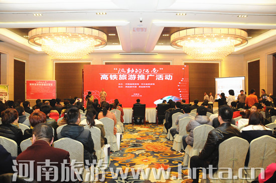 2月26日,河南省旅游局在石家莊舉辦“流動(dòng)的河南”高鐵旅游推介會(huì),邀請(qǐng)河北游客赴豫觀光旅游。河南省旅游局局長范修芳、副局長何琳,河北省旅游局局長栗進(jìn)路等出席推介活動(dòng)。兩省高鐵沿線城市旅游局和部分旅游企業(yè)負(fù)責(zé)人以及主流媒體記者參加活動(dòng),何琳副局長主持推廣活動(dòng)。