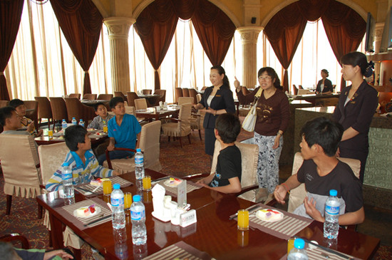 在第23個(gè)全國(guó)助殘日即將到來(lái)之際,飯店將再次采取實(shí)際行動(dòng),于5月17日當(dāng)天,免費(fèi)為開(kāi)封聾啞學(xué)校提供“助殘日”演出活動(dòng)場(chǎng)地,并在前期安排工作人員大力協(xié)助聾啞學(xué)校師生進(jìn)行彩排。帶領(lǐng)聾啞學(xué)校學(xué)生對(duì)飯店進(jìn)行參觀,為此各部門(mén)服務(wù)人員還特意組織學(xué)習(xí)了簡(jiǎn)單的手語(yǔ),來(lái)拉近與聾啞學(xué)生的距離,讓他們感受到愛(ài)心、平等。期間提供免費(fèi)飲料、甜點(diǎn),讓學(xué)生們也真正體會(huì)一下五星級(jí)飯店所帶來(lái)的真誠(chéng)服務(wù)。同時(shí),聾啞學(xué)校也將邀請(qǐng)諸多書(shū)法名家,免費(fèi)為其提供書(shū)法義賣(mài),充分發(fā)揮愛(ài)的魔力,將愛(ài)心接力繼續(xù)傳遞。
