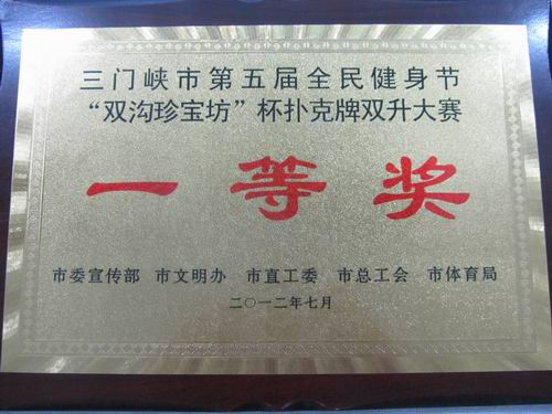 近日,由三門峽市宣傳部、市體育局、市總工會聯(lián)合主辦的三門峽市第五屆全民健身節(jié)“雙溝珍寶坊”杯撲克牌雙升大賽在我市二中舉行,共有參賽單位32個,148名選手參加。經(jīng)過兩天的激烈比賽,明珠賓館代表隊獲得了團體第一名的好成績。