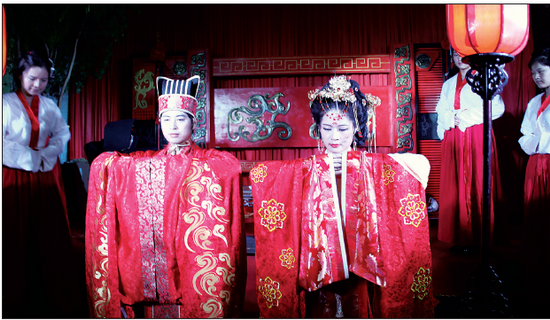 據(jù)了解,洛陽各大星級酒店目前普遍都打出“漢式婚禮”主題文化,也吸引了越來越多新人的參與。洛陽三星級酒店新友誼大酒店負責人說,進入十月份以來,該酒店已舉辦了六場“漢式婚禮”,既弘揚了傳統(tǒng)文化,又增加了酒店經(jīng)濟效益。
