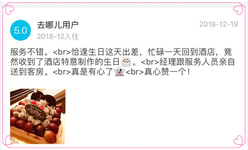 2018年11月29日,入住酒店的外賓意外收到了酒店的生日蛋糕和賀卡,還收到了前廳部經(jīng)理申甜的生日禮物,讓身在異國他鄉(xiāng)的外賓感動不已;