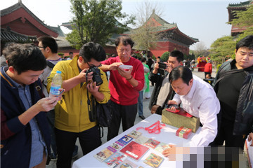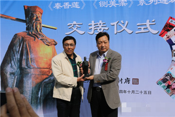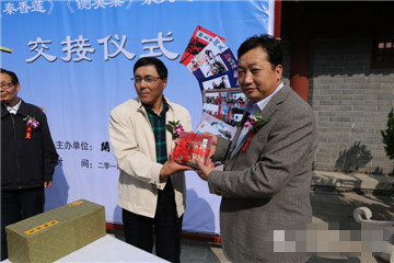 14年10月25日,在千古名衙開封府,在迎接中國開封第32屆菊花文化節(jié)的喜慶氛圍中,中國優(yōu)秀收藏家姚嘉康先生捐贈包公系列連環(huán)畫交接儀式在開封府明禮院前舉辦。開封府董事長段朝現(xiàn)、開封府副總經(jīng)理劉天增、開封市委宣傳部副調(diào)研員龐志民、中國收藏家協(xié)會報(bào)刊收藏委員會常務(wù)委員副秘書長、全國紙品收藏聯(lián)盟連環(huán)畫收藏活動委員會副主任、中國優(yōu)秀收藏專家、蘇州市助人為樂道德模范姚嘉康、全國首屆“全民國防教育先進(jìn)個(gè)人”、原鐵道部《鐵道知識》雜志社社長兼主編、全國總工會《中國職工教育》雜志副主編魏宗燕、蘇州著名民營企業(yè)家劉菊敏、開封包公研究會副會長、著名包學(xué)專家李良學(xué)、“劉少奇在開封陳列館”館長張雪志等出席了儀式。