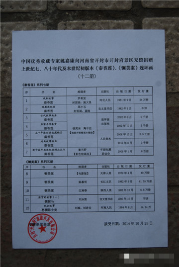 中國優(yōu)秀收藏家姚嘉康先生為開封府捐贈《秦香蓮》、《鍘美案》包公系列連環(huán)畫。