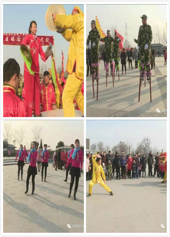 儀式現(xiàn)場表演節(jié)目眾多,踩高蹺、舞獅、唱戲、廣場舞等等,圍觀人數(shù)眾多,熱鬧非凡,其中多項為非物質文化保護遺產(chǎn)。