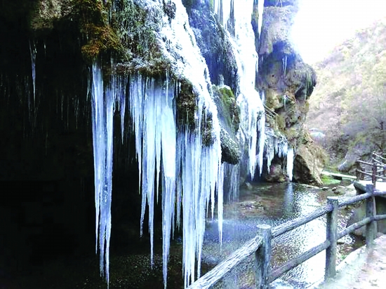 盧氏縣雙龍灣景區(qū)現(xiàn)冰掛奇觀
