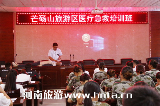 為提升景區(qū)員工醫(yī)療應(yīng)急救援的能力,有效正確處理景區(qū)突發(fā)醫(yī)療事件。2016年8月21日上午,芒碭山旅游區(qū)按照5A創(chuàng)建的要求,在芒山鎮(zhèn)政府二樓會議室開展了系統(tǒng)的醫(yī)療急救培訓。培訓醫(yī)師由永城市中心醫(yī)院主任醫(yī)師王麗帶隊,芒碭山旅游開發(fā)有限公司、地質(zhì)公園管理公司、漢澤園旅游公司、保安山商貿(mào)有限公司一線職工接受培訓。