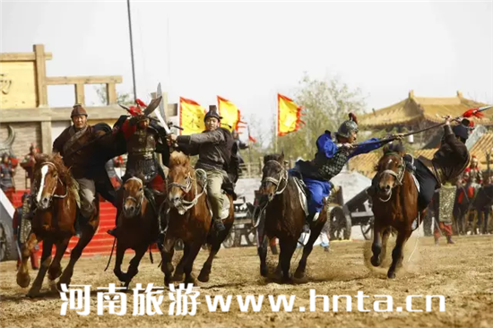 清明上河園游客人數(shù)的不斷刷新,不但沒有讓清園人止步不前,而是更加激發(fā)了清園人追求創(chuàng)新的激情。2013年10月1日,清明上河園斥資打造的大型英雄實景秀《岳飛槍挑小梁王》,以電影拍攝的手法震撼上演,其激烈的馬戰(zhàn)、震天的炮聲、巧妙的特效著實讓游客大開眼界,公演后幾乎場場爆滿。為了占座,很多游客甚至提前40分鐘入場等候。該劇目在原有馬術(shù)競技類劇目的基礎(chǔ)上進行全新創(chuàng)作,利用耳熟能詳?shù)脑里w故事來演繹岳飛精忠報國的愛國情懷,成為支撐清明上河園白天演出劇目的核心產(chǎn)品。該演出利用戰(zhàn)馬、揚沙、炮戰(zhàn)、飛箭,全景式的電影表現(xiàn),現(xiàn)代影視高科技手段,讓游客夢回千年前宏大的古戰(zhàn)場,給人以強烈的視覺沖擊和心靈的極度震撼。多個火炮炸點,加上煙霧、威亞的運用,讓觀眾充分感受到了演藝創(chuàng)新帶來的視覺震撼。對此,周旭東認(rèn)為,清明上河園是一個靠文化創(chuàng)新安身立命的企業(yè),只有不斷創(chuàng)新,不斷推出讓游客滿意的新產(chǎn)品,才能持續(xù)發(fā)展。