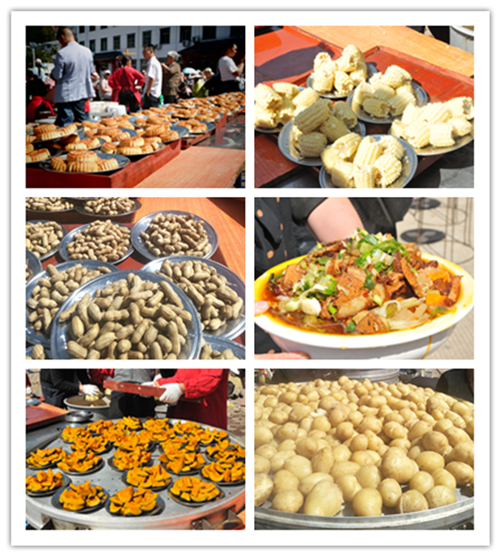 本次豐收宴拋棄了傳統(tǒng)的制作方式,宴席食材采用了采購(gòu)于山區(qū)貧困農(nóng)戶(hù)的紅薯、玉米、土豆、南瓜、花生等綠色健康的農(nóng)副產(chǎn)品。不僅讓廣大游客切實(shí)感受到了豐收的喜悅,而且對(duì)貧困農(nóng)戶(hù)帶去了幫助。