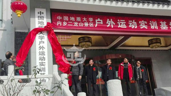與會(huì)的中國地質(zhì)大學(xué)副校長邢相勤、中國戶外運(yùn)動(dòng)專業(yè)委員會(huì)副主任委員、中國地質(zhì)大學(xué)教授、體育課部主任董范、中國地質(zhì)大學(xué)校友與社會(huì)合作處副處長盧杰、內(nèi)鄉(xiāng)縣政協(xié)副主席、縣旅游業(yè)領(lǐng)導(dǎo)小組副組長周中才共同為二龍山景區(qū)“中國地質(zhì)大學(xué)戶外運(yùn)動(dòng)實(shí)訓(xùn)基地”揭牌。