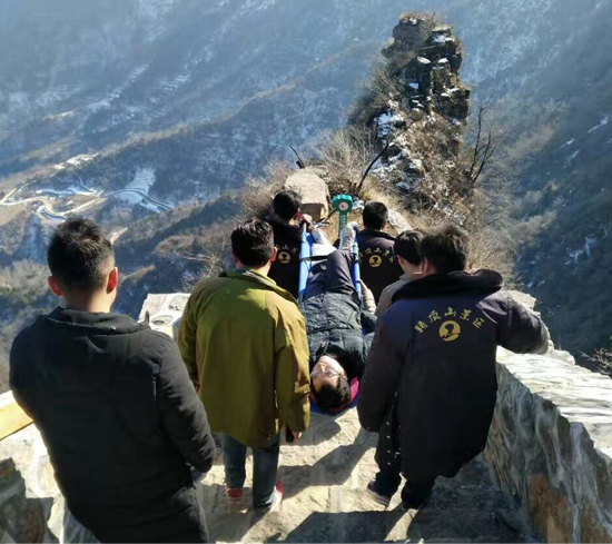 2017年2月11日,轎頂山景區(qū)迎來游客小高峰,景區(qū)內(nèi)游客絡(luò)繹不絕。一名游客因登山途中不慎發(fā)生意外,轎頂山值班人員第一時間趕到現(xiàn)場并進行簡單救護。