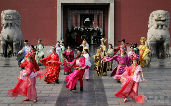 8月19日,開封府門前人頭攢動。原來是開封府演出部全體演員們在開封府門前跳神曲《小蘋果》。