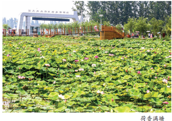 水上餐廳是園區(qū)最受游客青睞的場(chǎng)所之一。在這里,紅薯葉菜餅、馬齒莧攤饃等包含田園氣息與農(nóng)家風(fēng)味的小吃,讓大飽眼福的游客也一飽口福。為滿(mǎn)足游客餐飲需求,園方還專(zhuān)門(mén)聘請(qǐng)十幾名職業(yè)廚師,成立“銀灘老灶”,為游客烹飪黃河鯉魚(yú)、荷葉香雞等特色菜品。