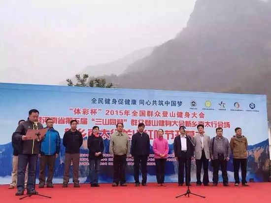 10月24日上午9時(shí),在熱鬧非凡的鑼鼓聲中,由國(guó)家體育總局、中國(guó)登山協(xié)會(huì)、河南體育局、河南文明辦、河南旅游局、新鄉(xiāng)人民政府主辦,河南體育管理中心、河南旅游局信息中心、河南登山戶(hù)外協(xié)會(huì)、新鄉(xiāng)體育局、新鄉(xiāng)市旅游局和輝縣人民政府協(xié)辦的三山同登全民健身登山大會(huì)暨關(guān)山紅葉節(jié)在南太行關(guān)山隆重舉行。