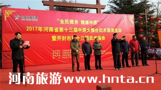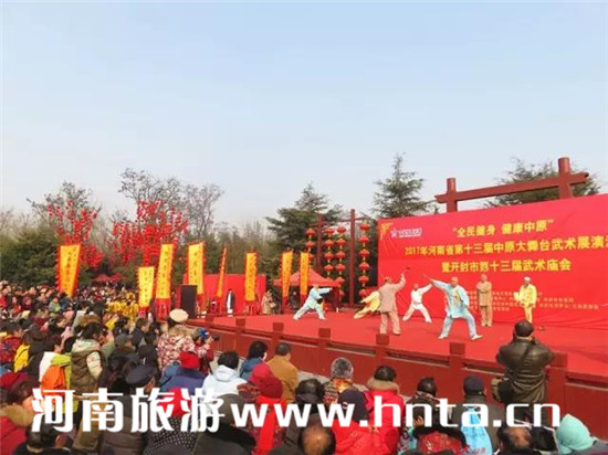 “全民健身,健康中原” 2017年河南省第十三屆中原武術(shù)大舞臺武術(shù)展演活動暨開封市第十三屆武術(shù)廟會2月9日在萬歲山·大宋武俠城景區(qū)開幕,活動當(dāng)天來自開封市區(qū)以及各周邊縣區(qū)的多支傳統(tǒng)武術(shù)團(tuán)隊(duì)輪番上陣,為廣大來賓展現(xiàn)了博大精深的開封武術(shù)文化和獨(dú)特魅力。