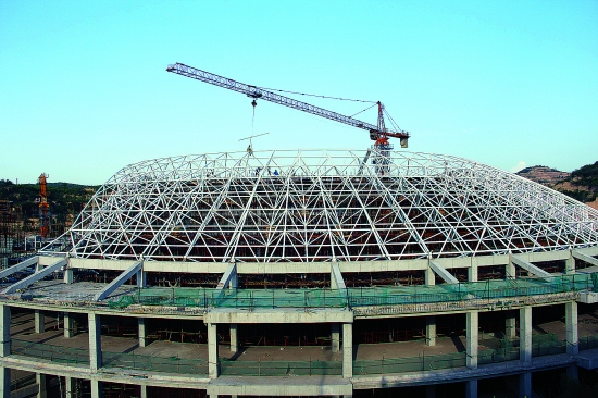 高陽山溫泉度假區(qū)溫泉中心初露芳容(7月2日攝)。