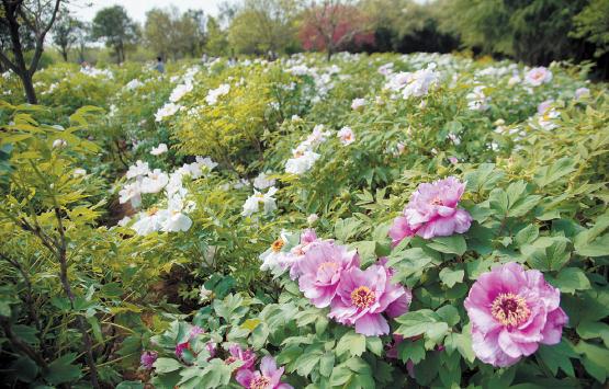 在國(guó)際牡丹園的早開(kāi)品種牡丹中,約有180個(gè)品種6.8萬(wàn)株牡丹開(kāi)放,山花爛漫、叢中笑、小桃紅、粉中冠、魯粉、火煉金丹、迎日紅等品種盛開(kāi)。昨日,記者在園內(nèi)看到,華夏園中、攬秀亭四周的假山上,各品種牡丹盛放迎賓;九色園內(nèi)成片的鳳丹、粉中冠開(kāi)放,萬(wàn)芳園內(nèi)大片的洛陽(yáng)紅含苞待放,錦繡園內(nèi)成片的小桃紅、火煉金丹、魯粉等開(kāi)放,令游客流連忘返。