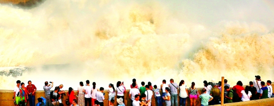 7月8日上午8時, 三門峽大壩啟動泄洪閘,開始進行調(diào)水調(diào)沙。自2002年起,黃河調(diào)水調(diào)沙工程每年進行一次,從而減輕黃河河道淤積。連年來,三門峽大壩調(diào)水調(diào)沙成為黃河上一道亮麗風(fēng)景,每年都吸引著全國各地的大量游客前來參觀。