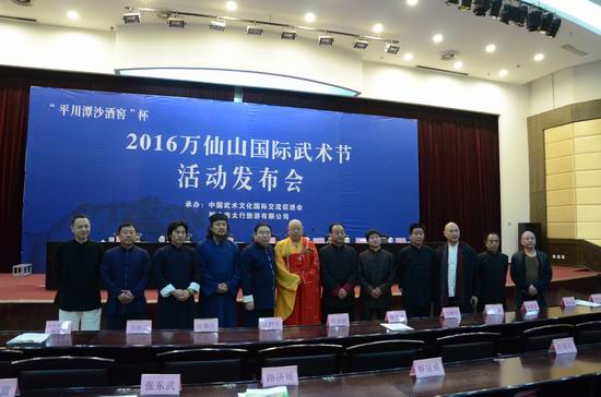 4月15日上午,“平川潭沙酒窖”杯2016萬仙山國際武術(shù)節(jié)活動發(fā)布會在新鄉(xiāng)舉行。新鄉(xiāng)市政府副市長周世杰、市政府辦公室副主任孫傳勇、市體育局局長南果良、市外事僑務(wù)旅游局局長崔紅、新鄉(xiāng)南太行旅游度假區(qū)管委會常務(wù)副主任王建、新鄉(xiāng)南太行旅游有限公司總經(jīng)理王紅昌、河南省武術(shù)協(xié)會副主席、新鄉(xiāng)市武術(shù)協(xié)會主席閆志國等,以及國家級、省市級新聞媒體記者、旅行社和酒店代表參加了本次發(fā)布會。