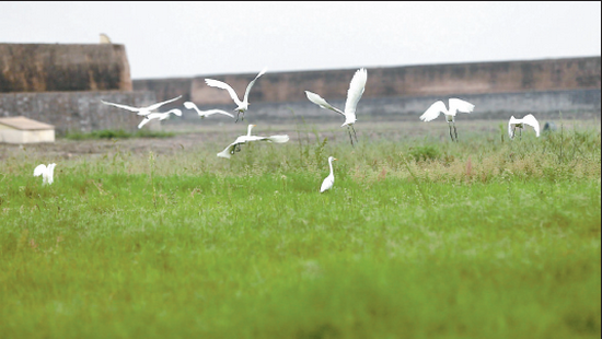 時(shí)值秋季 ,洛陽(yáng)漢魏故城遺址區(qū)內(nèi),千畝油葵或花開爛漫,或孕籽頜首;行行白鷺或輕足佇立,或上下翻飛,瀟瀟細(xì)雨中,游人感受到別樣的情致。
