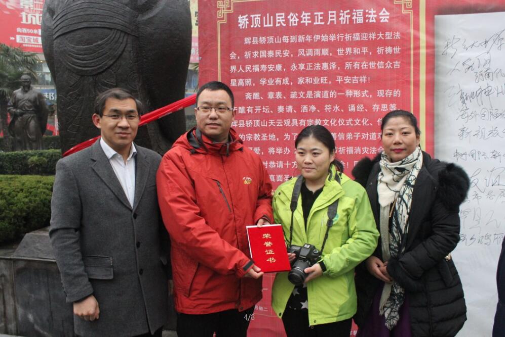 1月5日, 河南省旅游局信息中心工會主席楊志威蒞臨新鄉(xiāng)轎頂山景區(qū)臘八祈福施粥活動現(xiàn)場,特意向轎頂山景區(qū)通訊員劉洋頒發(fā)了由河南省旅游局頭條號、河南旅游資訊網(wǎng)優(yōu)秀原創(chuàng)文章榮譽(yù)證書和稿費(fèi),同時楊志威主席表示,感謝他們一年來對河南省旅游局頭條號、河南旅游資訊網(wǎng)的信息支持,希望在新的一年里轎頂山景區(qū)大力加強(qiáng)旅游信息編輯匯報工作,多為河南省旅游局提供更多原創(chuàng)信息優(yōu)秀稿件。