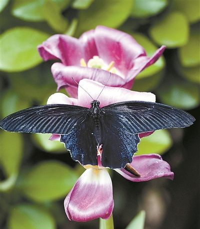 昨日,在中國(guó)國(guó)花園的蝴蝶鳥(niǎo)語(yǔ)林里,翩翩起舞的蝴蝶引來(lái)不少游人駐足拍照。今年是該園第三次舉辦蝴蝶展,在展覽期間,該園將陸續(xù)放飛來(lái)自世界各地的數(shù)十種珍稀品種,共8萬(wàn)余只蝴蝶供游人觀賞。