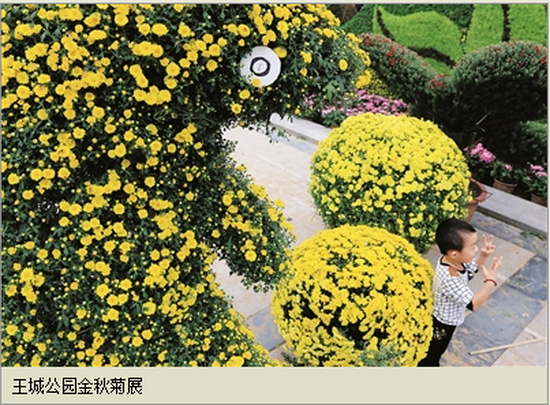 9月28日,王城公園正在布展的2014金秋菊展吸引了不少游客駐足觀賞。10月1日至31日,王城公園游園活動豐富多彩、亮點頻出。