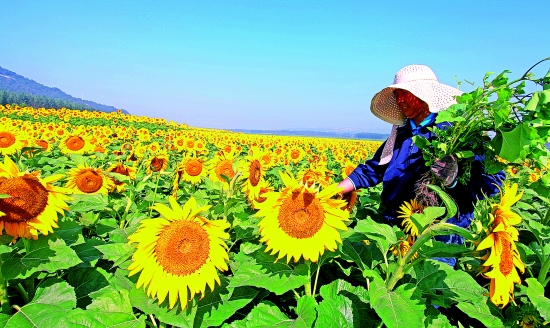 農(nóng)民在葵花地里忙碌著
