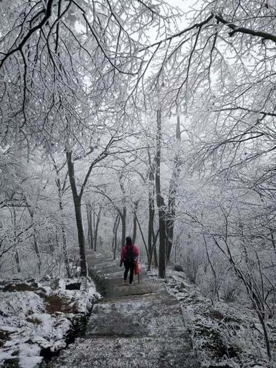 近日,河南各地降下今冬首場大雪,氣溫也隨之驟降,位于新鄉(xiāng)南太行的各大景區(qū)也被厚厚的大雪覆蓋,形成霧凇景觀。資料顯示,霧凇是由于霧中無數(shù)零攝氏度以下尚未凝化的水蒸氣隨風(fēng)在樹枝等物體上不斷積聚凍粘的結(jié)果,是非常難得的自然奇觀。霧凇的出現(xiàn),讓新鄉(xiāng)南太行變得玲瓏剔透,如童話世界般美不勝收,吸引了大批游客上山觀賞美景。