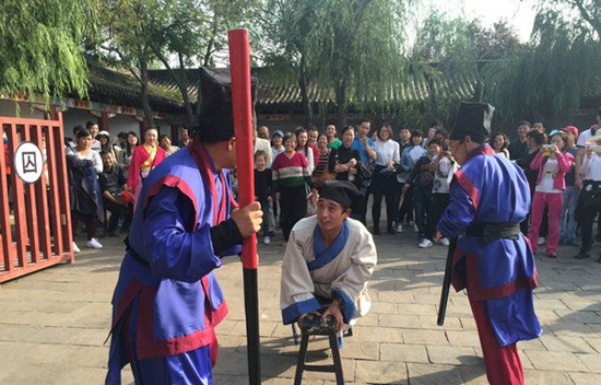 金秋十月,隨著國(guó)慶節(jié)的到來(lái),開(kāi)封的菊花也跟著秋風(fēng)悄悄的綻開(kāi)了。中國(guó)翰園為迎接國(guó)慶精心設(shè)計(jì)排練4個(gè)月的大型歷史文化劇-----貢院也正是上演了。來(lái)自全國(guó)各地的游客朋友們都積極踴躍的參與。他們穿上古代的傳統(tǒng)服飾扮演考生,“穿越”到1300年以前參加科舉中狀元。同時(shí)也使游客朋友們親身感受到了中國(guó)古代傳統(tǒng)的科舉文化。