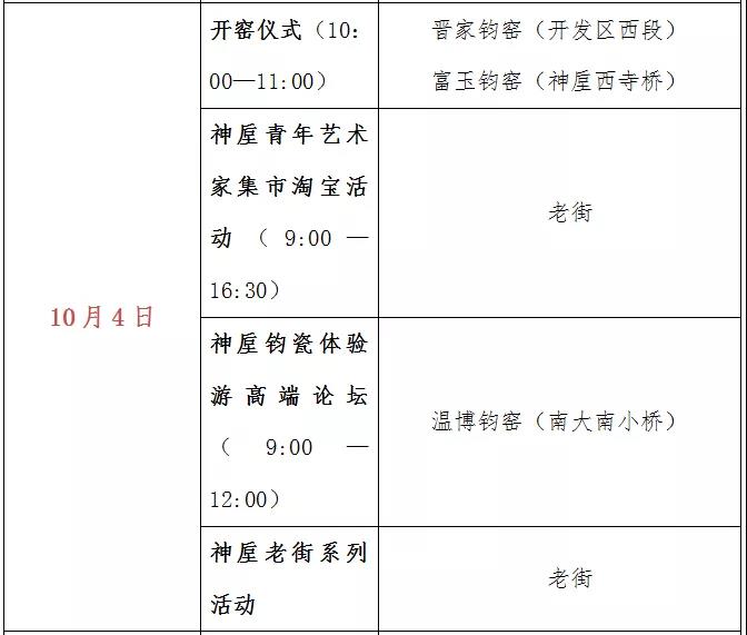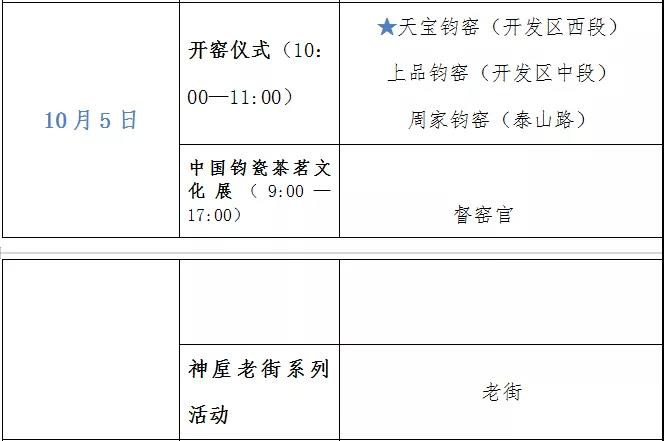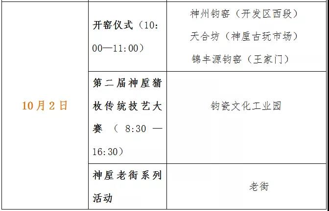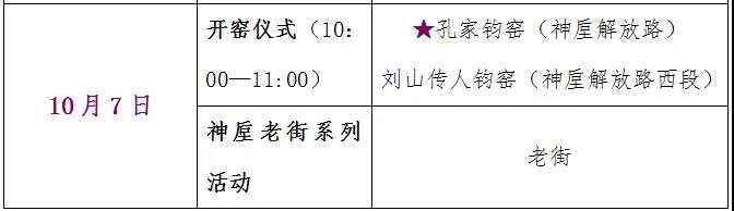 十一國慶假期中,神垕古鎮(zhèn)每天都將有兩家以上的鈞瓷窯廠舉行開窯儀式,方便廣大游客根據(jù)情況選擇觀看、游玩和體驗;神垕老街每天都有不同的系列活動展示輪番上演;此外,還有鈞瓷藝術展、猜枚傳統(tǒng)技藝大賽等豐富的活動穿插其中!