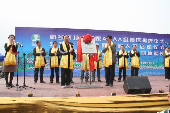4月17日上午,新鄉(xiāng)轎頂山景區(qū)隆重舉行國家4A級(jí)旅游景區(qū)揭牌儀式。河南省旅游局局長寇武江、河南省旅游局副巡視員潘進(jìn)軍、新鄉(xiāng)市政府副市長職偉、省旅游局監(jiān)督管理處處長張建州、新鄉(xiāng)市政府辦公室副主任孫傳勇、新鄉(xiāng)市旅游局局長崔紅、新鄉(xiāng)市人大民族僑務(wù)外事委員會(huì)主任孫家順、輝縣市人民政府市長張星吉等出席了揭牌儀式。