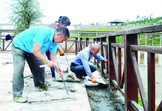 9月23日,三門(mén)峽市商務(wù)中心區(qū)歡樂(lè)谷景區(qū),幾名工人正在鋪設(shè)路面。