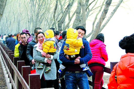 2月11日,天鵝湖畔木棧道上人潮涌動(dòng)。 王建棟 攝