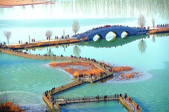 在三門峽天鵝湖國(guó)家城市濕地公園,春節(jié)期間慕名前來觀賞、拍攝白天鵝的游客有15萬多人次;黃河公園達(dá)14.47萬人次,比去年春節(jié)多出4萬余人次;函谷關(guān)景區(qū),中外游客11.24萬人;陜州等三個(gè)天井窯院自駕游客達(dá)2.234萬人,有的村中道路都被車輛堵塞了;甘山國(guó)家森林公園因有滑雪場(chǎng),有萬余人乘自駕車前往觀光……好客的三門峽以靈山秀水的美麗和整潔干凈的舒心環(huán)境迎接八方賓朋。