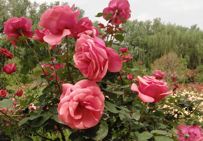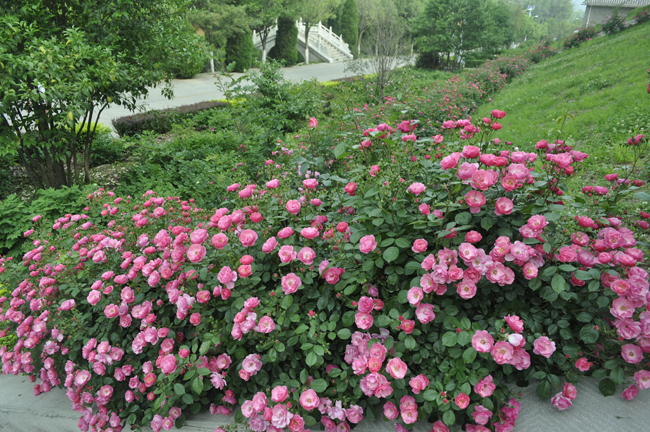 雞冠洞的月季,在五月,在春夏之交,如火如荼地怒放著,花墻、花籬、花籃、花門、花環(huán)······奇異的造型,色彩的姹紫嫣紅,驚艷著入園的賞花人,沁人心脾的馨香在暖風(fēng)里彌漫著······