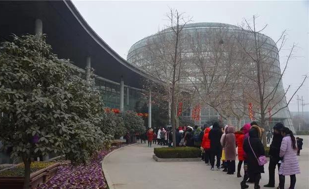 看了這標(biāo)志性的建筑,不少對它的名字脫口而出:鄭州植物園。沒錯,這里正是鄭州植物園熱帶植物溫室。室外排隊的人不停地央求管理人員:“放我們進去唄,天恁冷!”