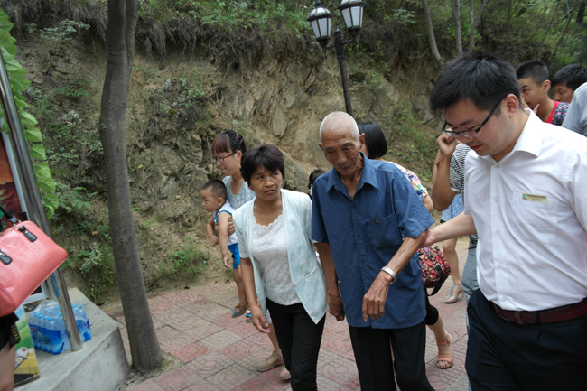 昨天,雞冠洞景區(qū)營銷部的小劉早早就在景區(qū)的中心廣場上等候嵩縣的一家人,上午10點左右,一對兒女扶著一位步履蹣跚的老人走下車來,小劉看看手機上的照片,就是欒川吧上發(fā)帖的“快拍三秒鐘”,于是就疾步上前將老人攙扶•••••。