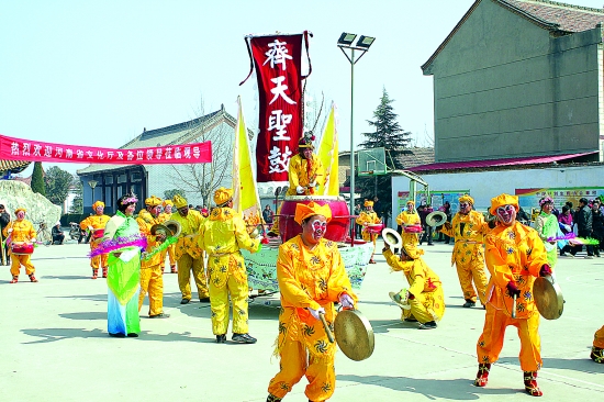 除了齊天圣鼓外,靈寶還有著名的王家熱鑼鼓。“看王家大鑼鼓,不用拿飯錢。”這是當(dāng)?shù)厝罕妼?duì)王家熱鑼鼓的評(píng)價(jià)。王家熱鑼鼓又稱亞武天鑼,發(fā)源于靈寶市豫靈鎮(zhèn)杜家村的王家自然村,2008年入選河南省非遺名錄。