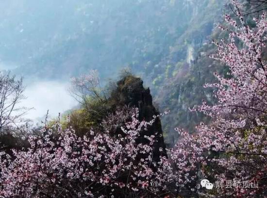 轎頂山的桃花,因氣候原因?偙绕渌胤降奶一ㄒ獖檴欉t開,每當(dāng)三月下旬,成片的桃林、成片的花骨朵,像深情的妙齡少女,抹上絲絲腮紅,眼波流轉(zhuǎn),含情脈脈等君來采。