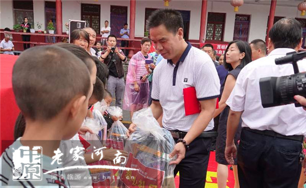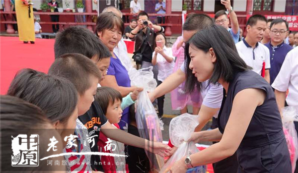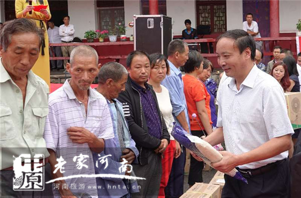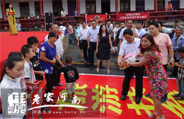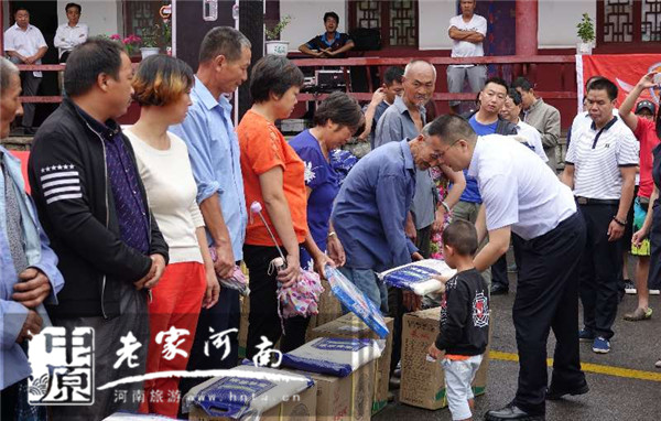 在活動(dòng)現(xiàn)場,平頂山市旅游局局長張風(fēng)嶺、魯山縣旅游局局長陳立新、四棵樹鄉(xiāng)人民政府鄉(xiāng)長段雪楓、平頂山市旅游局駐沃溝村第一書記張雁斌、天瑞旅游集團(tuán)股份有限公司副總經(jīng)理徐大川、河南省自駕游護(hù)照發(fā)行中心總經(jīng)理張廣輝、鳳凰網(wǎng)河南旅游頻道總監(jiān)郭穎穎及昆明航空公司鄭州營業(yè)部吳長壁和坤泰農(nóng)業(yè)營銷總監(jiān)賈慶吾等愛心企業(yè)為貧困學(xué)生發(fā)放愛心大禮包;并為貧困戶發(fā)放電風(fēng)扇、大米、食用油及愛心食品、衣物等生活急需的愛心物資。